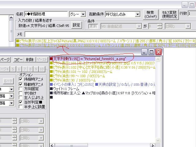 つまり、このイベントでは文字列 つまり、背景となる画像のデータ名を可変データベースに書き込んでいると言う事です。